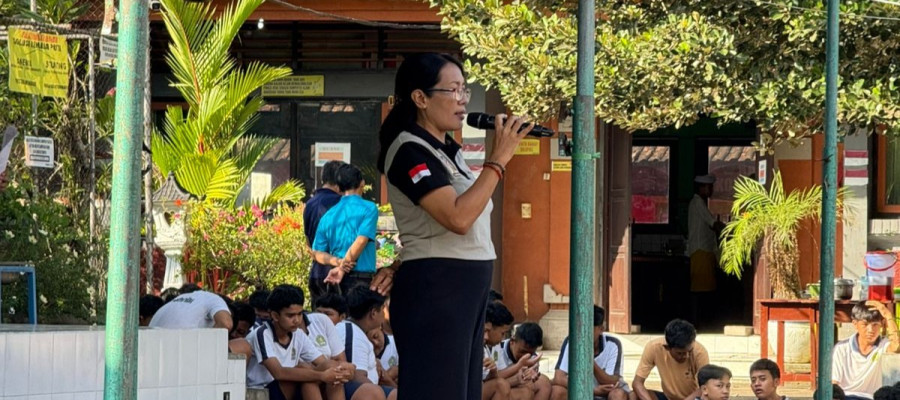 Kunjungan Bupati Tabanan ke SMP Negeri 2 Kediri dalam rangka pemberian bantuan secara simbolis berupa masker, handsanitizer serta sabut cuci tangan kepada pihak sekolah.
